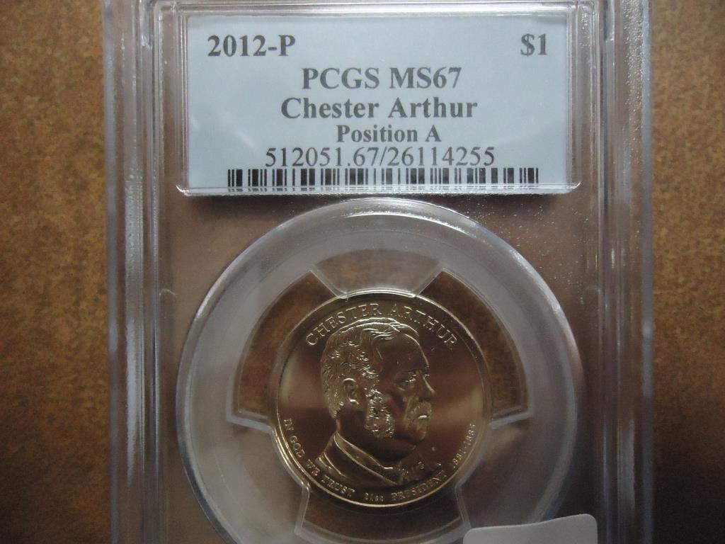 2012-P ARTHUR DOLLAR PCGS MS67 POS. A