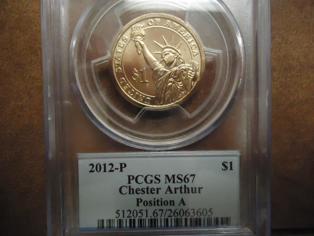 2012-P ARTHUR DOLLAR PCGS MS67 POS. A