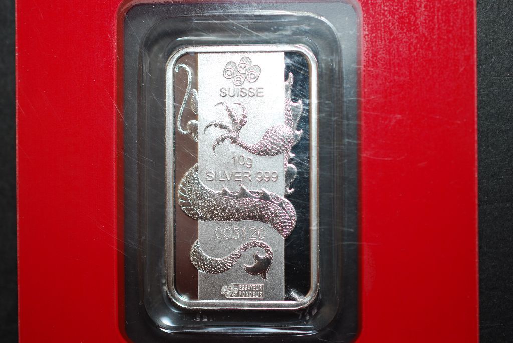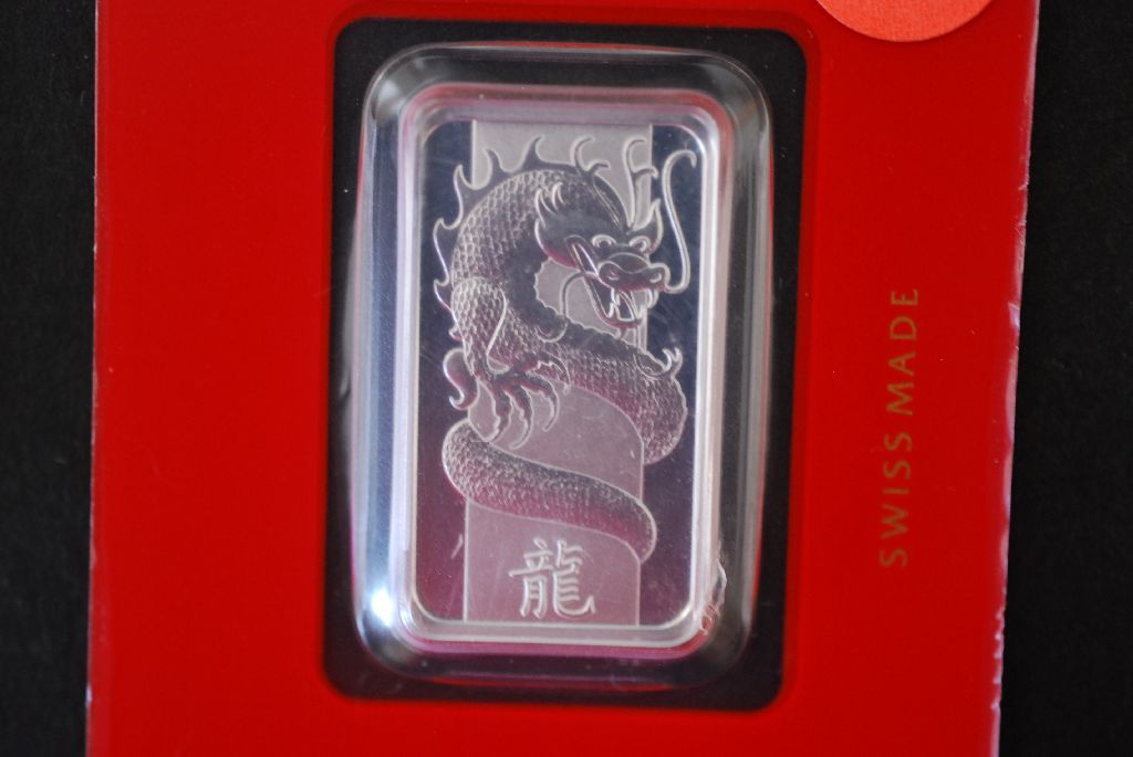 2012 PAMP Suisse Silver Ingot Lunar Calendar Series "Dragon"; 999 Silver 10 Gram; EST. $50-75