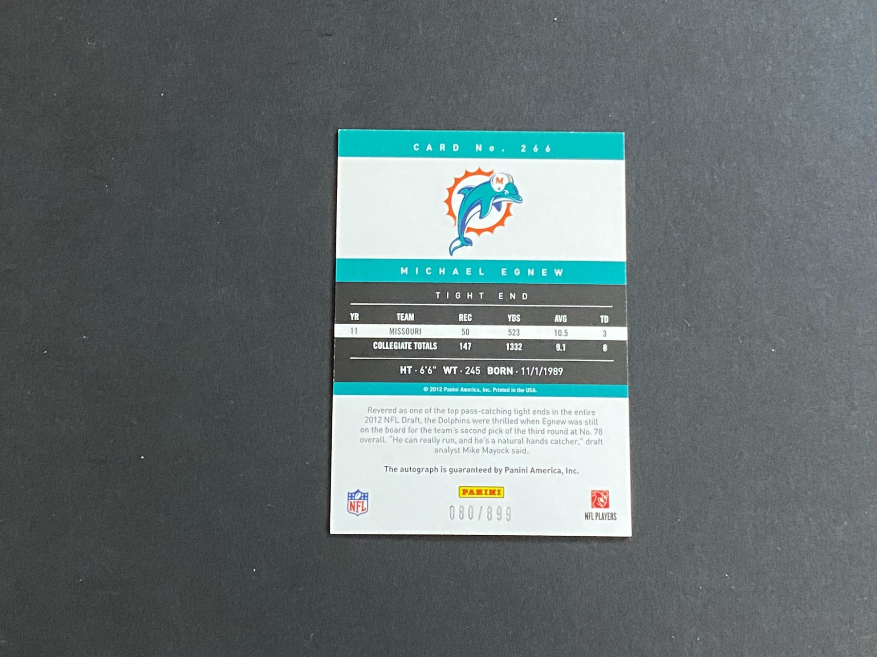 2012 PANINI FOOTBALL AUTOGRAPH ROOKIE MICHAEL EGNEW #080/899 N.F.L AUTOGRAPH CARD