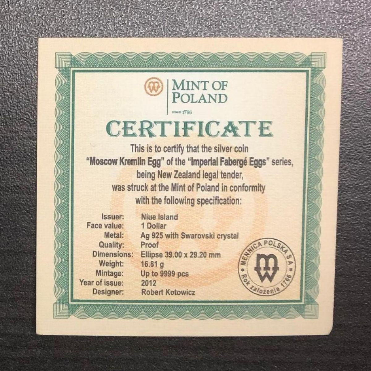 Imperial Faberge Eggs are a magnificent series of minted works by Carl Peter Faberge and his assistants. Thanks to the exuberance, intricacy and splendor of decoration, Faberge Eggs have gained a huge popularity as jewelry masterpieces. Now, struck in .925 proof silver, they are sure to become an extravagant and luxurious addition to any modern coin collection. On the obverse of this silver Faberge coin, there is the image of the open Spring Flowers Egg with a miniature basket of wood anemones inside. The portrait of Queen Elizabeth II is surrounded by the florid ornament with the legends indicating the face value of the Niue coin, its issuing country and year. The beautifully crafted reverse features the Moscow Kremlin Egg (1904) considered to be the tallest and most ambitious of the Imperial Easter eggs. Created in minute detail, it represents the Uspensky Cathedral where Russian tsars were crowned. Imperial Faberge Eggs got their name due to the fact that they were made for Alexander III and Nicholas II of Russia. The reverse image is embellished with a colored Swarovski crystal to fully express the finesse and magnificence of the original Moscow Kremlin Egg. The coin has been issued with the limited mintage of 9999 pieces worldwide, so don’t miss the opportunity to own the silver masterpiece by Niue! - All items may be shipped or picked up locally within one week of sale. We will provide shipping estimates to the winning bidders or winning bidders may arrange their own shipping.