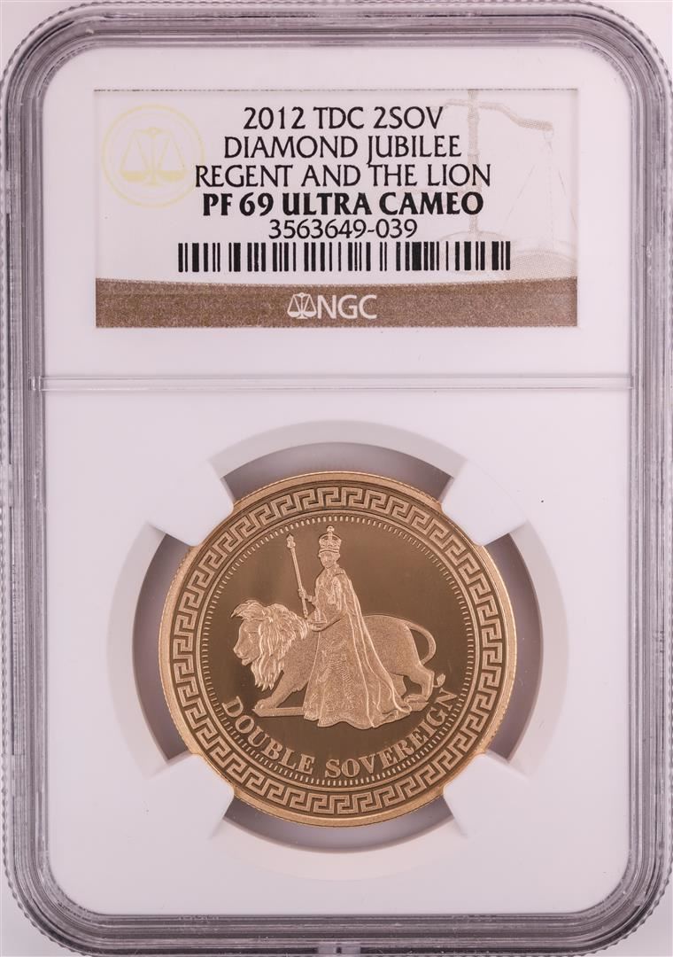 One 2012 Proof Great Britain 2 Sovereign Regent and Lion Gold Coin NGC PF69 Ultra Cameo. NGC Certified.