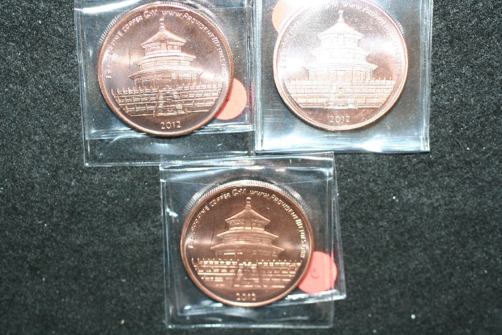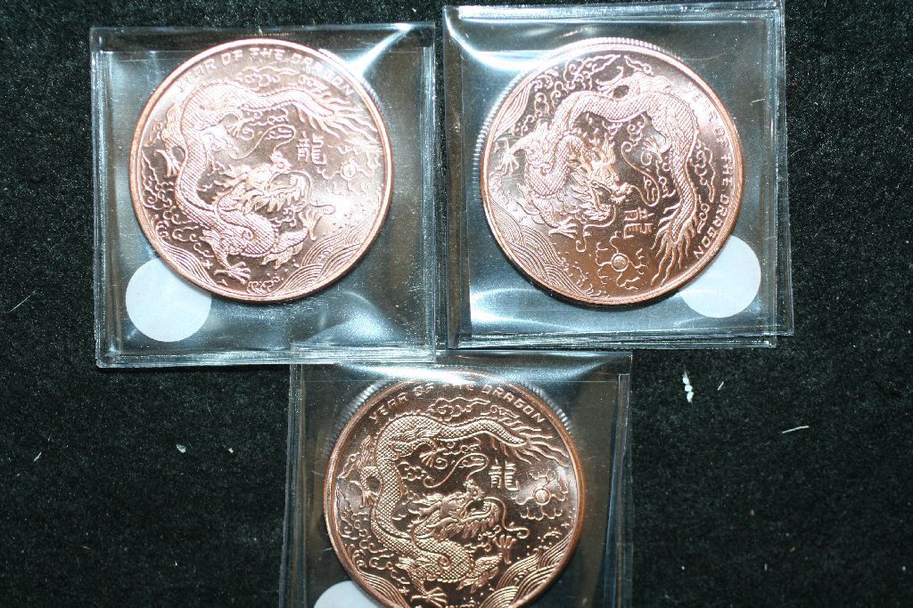 2012 Provident Metals Copper Round; .999 Fine Copper 1 Oz.; Year of The Dragon; Lot of 3