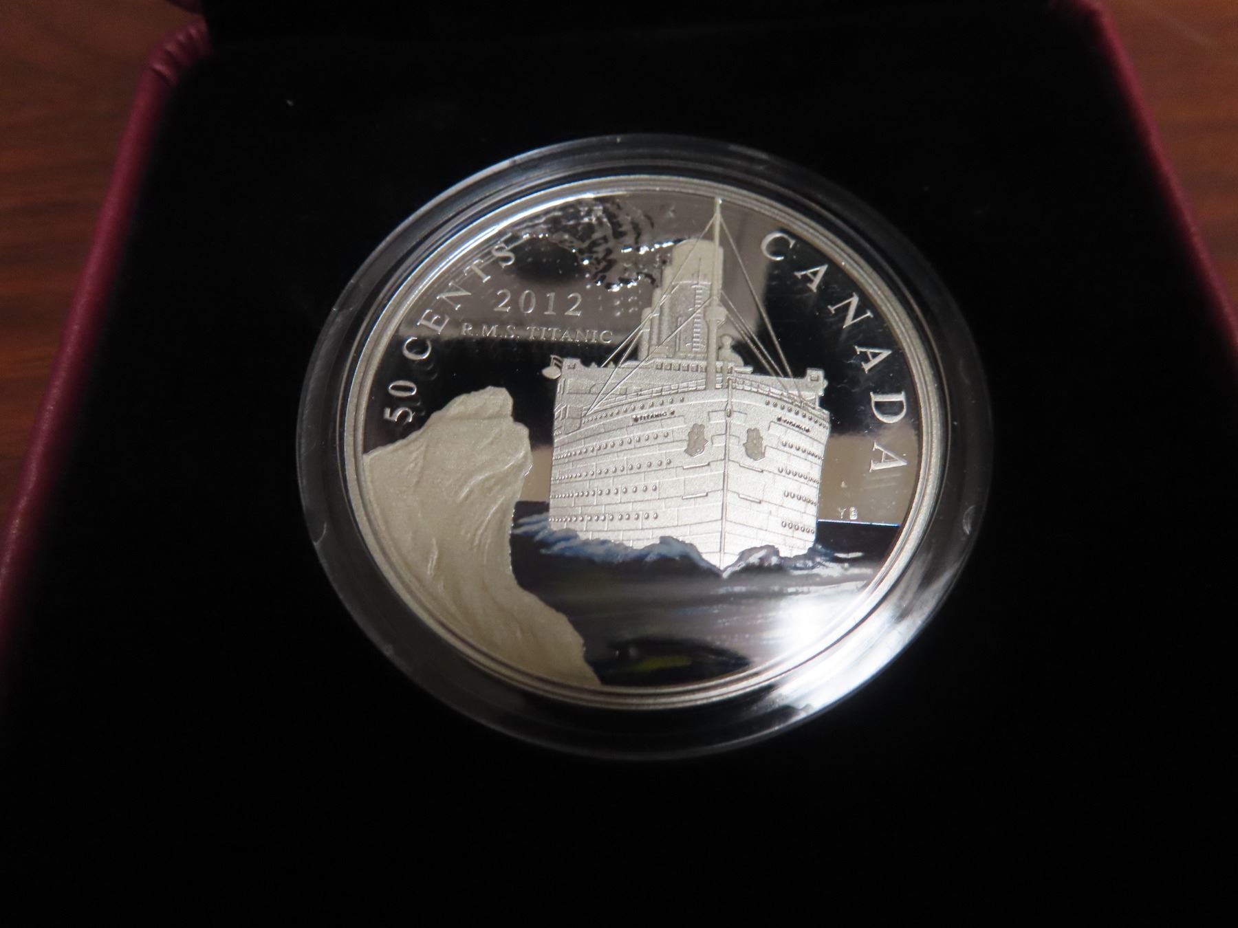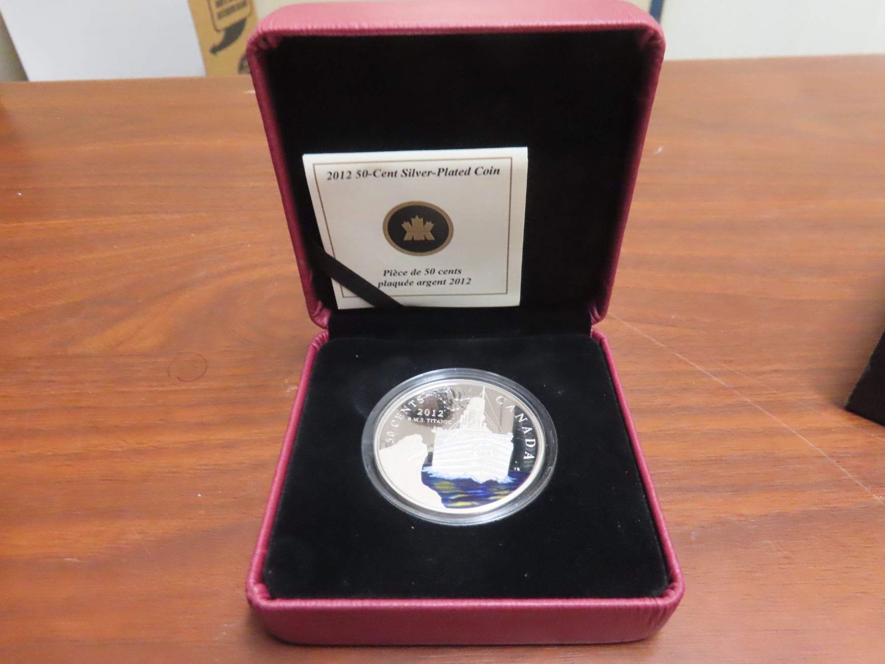 2012 R.M.S. Titanic 50 Cents. 100th Anniversary of the sinking of this famous ship off the coast of Newfoundland. Silver Plated. Proof with Ultra Heavy Cameo. Housed in its original Royal Canadian Mint case & box of issue. Includes Certificate of Authenticity.