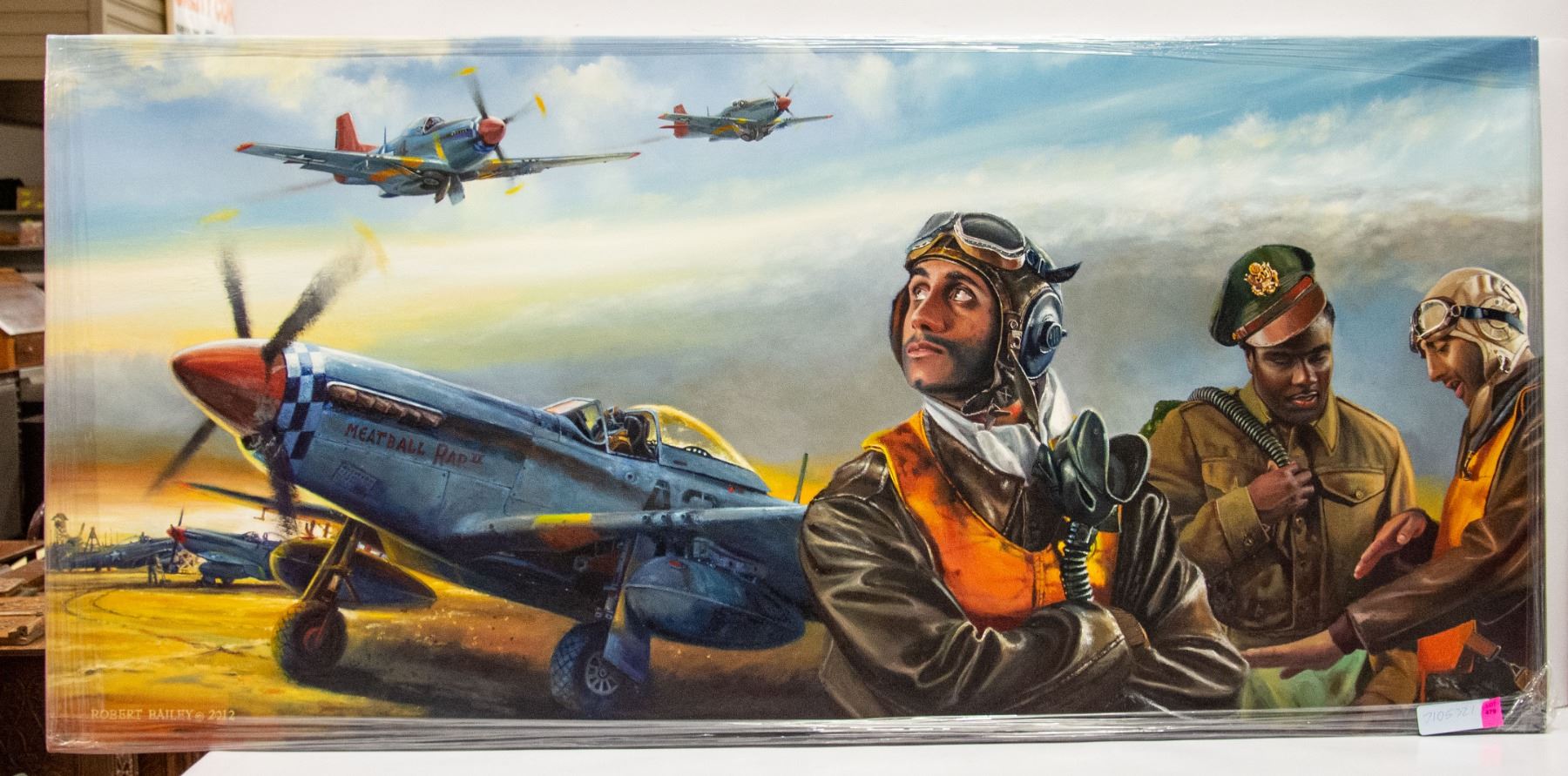 BY THE ARTIST AND WITH 7 TUSKAGEE AIRMEN SIGNITURES. INCLUDE 2 TUSKAGEE BOOKS AND BLUE-RAY MOVIE