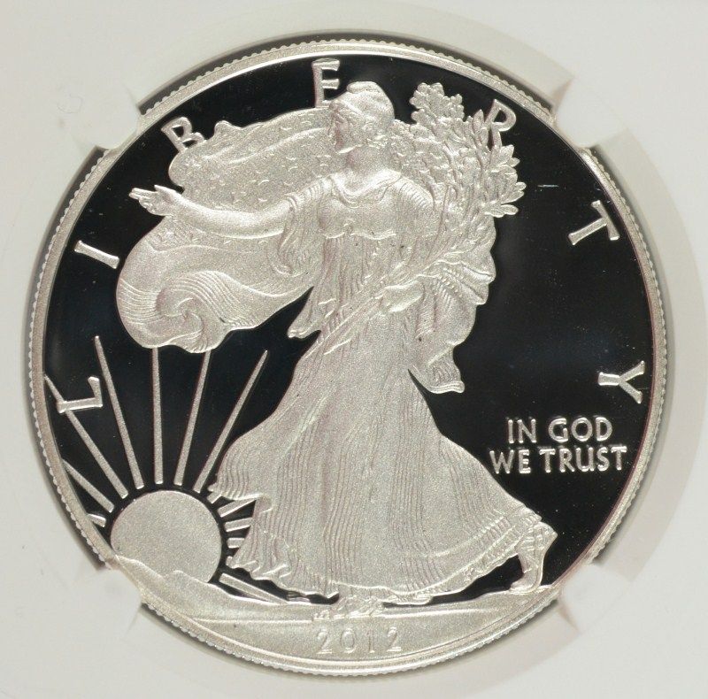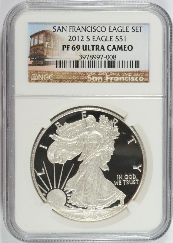 2012-S $1.00 AMERICAN SILVER EAGLE, NGC PROOF-69 ULTRA CAMEO! TROLLEY LABEL