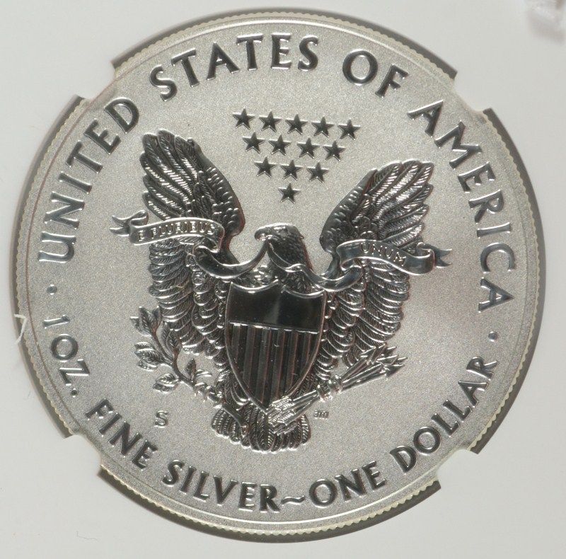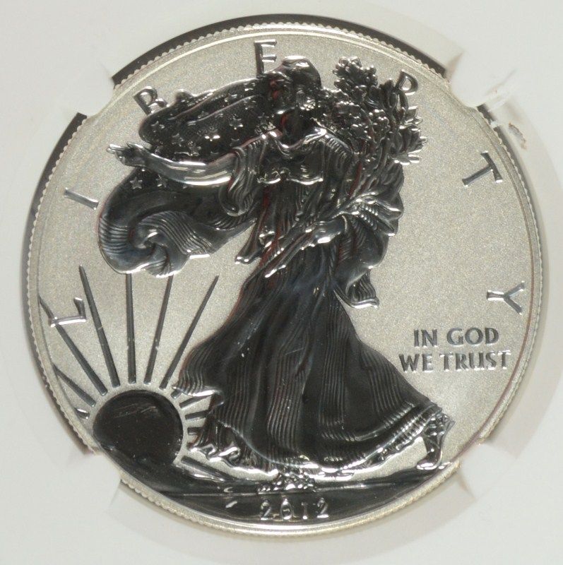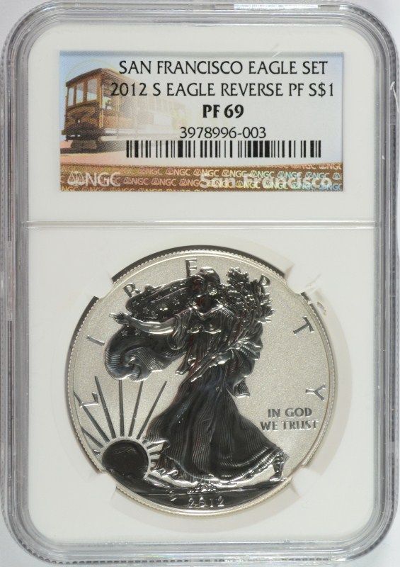 2012-S $1.00 AMERICAN SILVER EAGLE REVERSE PROOF, NGC PROOF-69! TROLLEY LABEL
