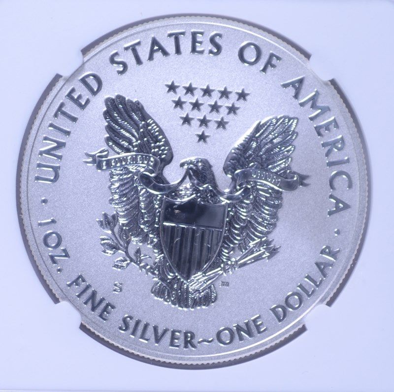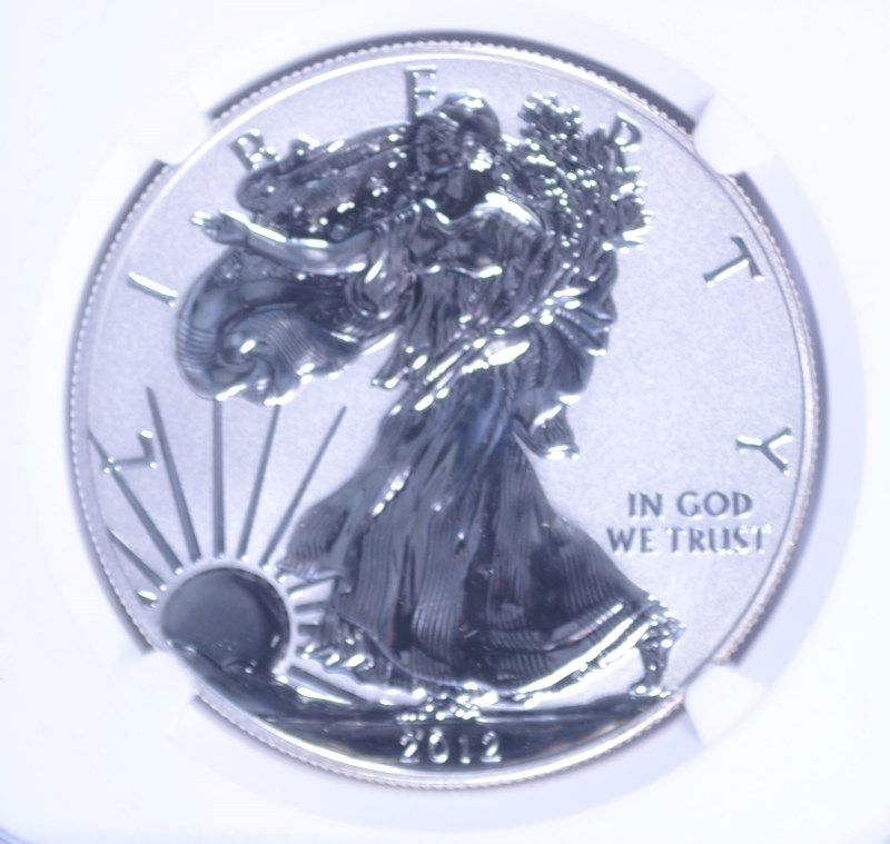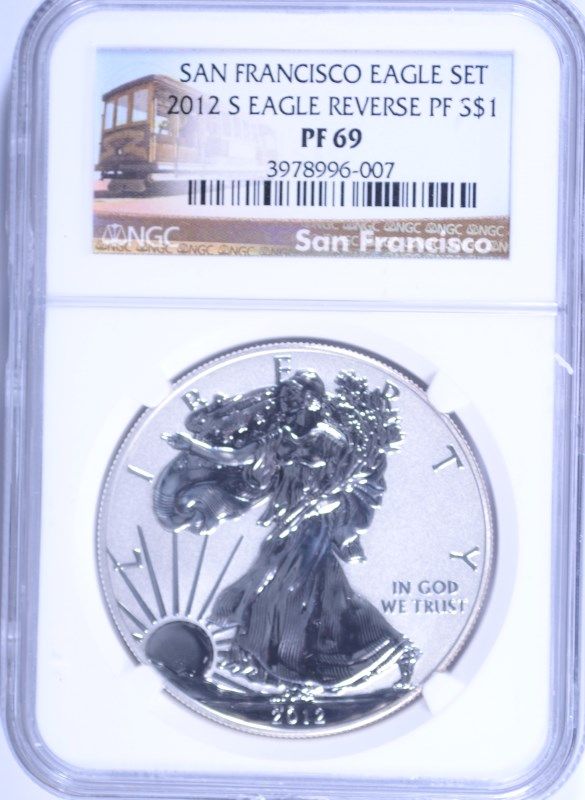 2012-S $1.00 AMERICAN SILVER EAGLE REVERSE PROOF, NGC PROOF-69 TROLLEY LABEL