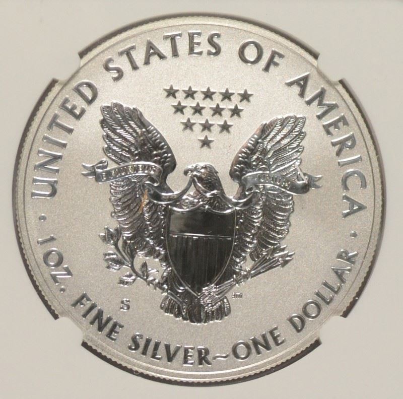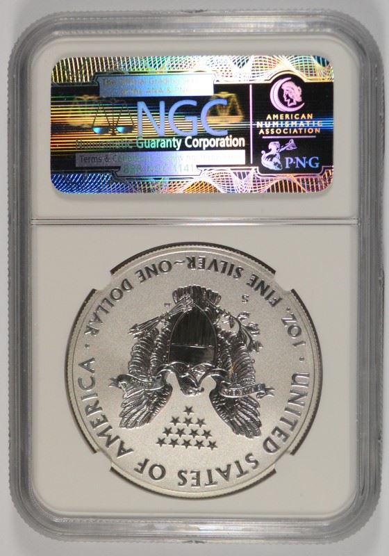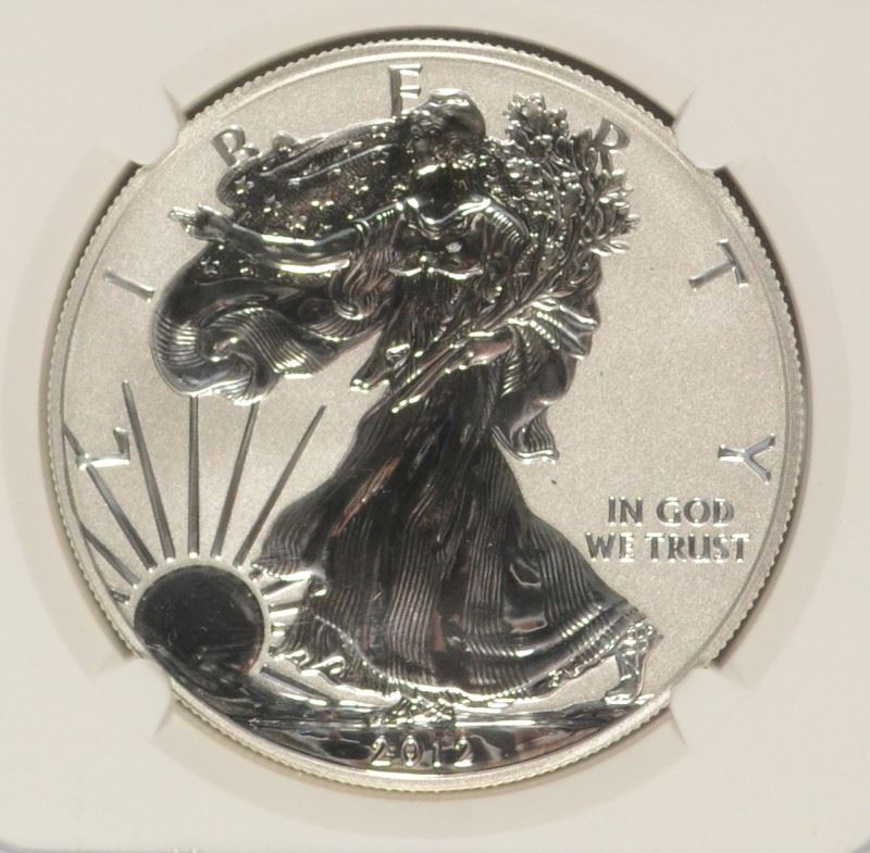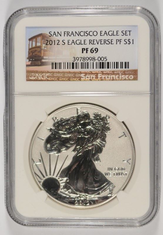 2012-S $1.00 AMERICAN SILVER EAGLE, REVERSE PROOF, NGC PROOF-69 TROLLEY LABEL
