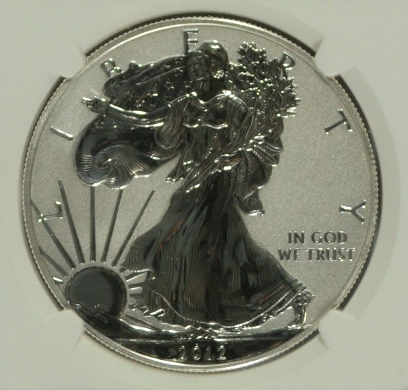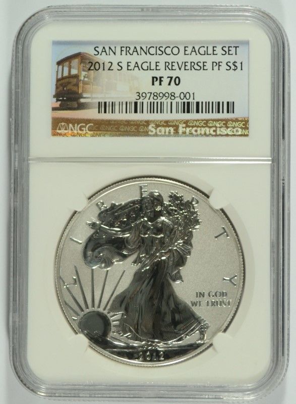 2012-S $1.00 AMERICAN SILVER EAGLE, REVERSE PROOF, NGC PROOF-70! TROLLEY LABEL