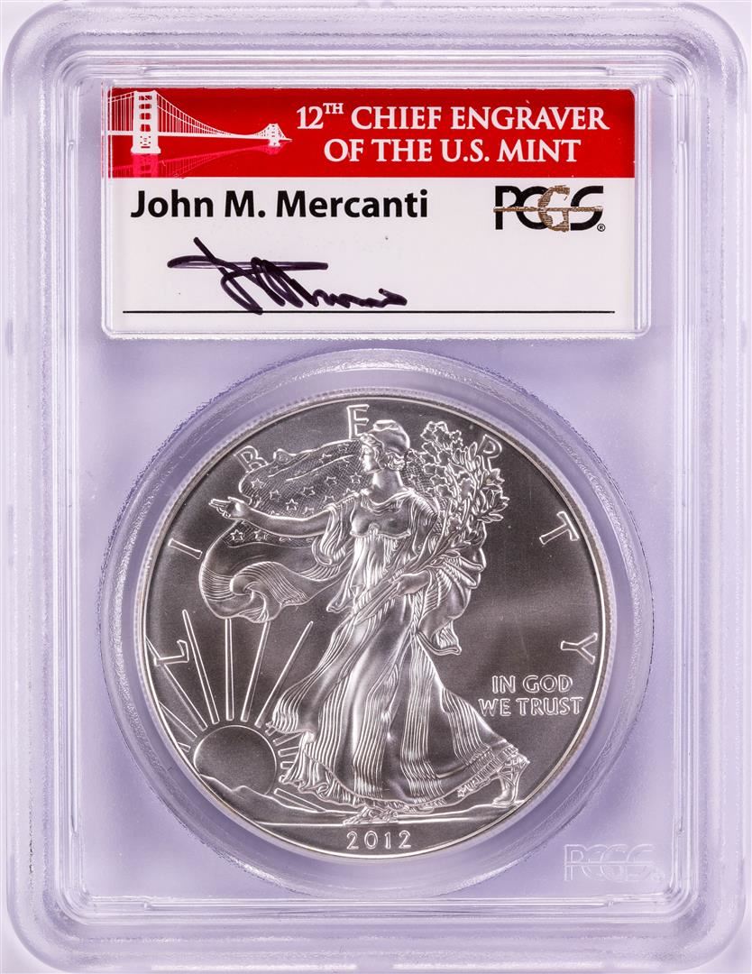 2012-(S) $1 American Silver Eagle Coin PCGS MS70 Mercanti Signed San Francisco