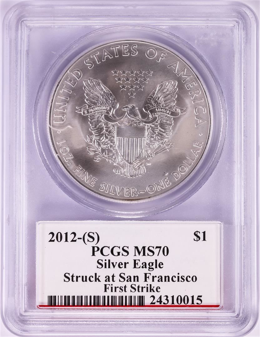 One 2012-(S) $1 American Silver Eagle Coin PCGS MS70 Mercanti Signed San Francisco. PCGS Graded.