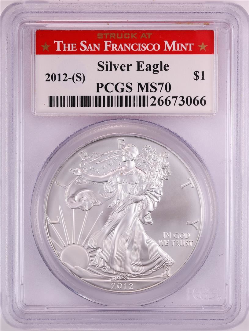 One 2012-(S) $1 American Silver Eagle Coin PCGS MS70 San Francisco. PCGS Graded.