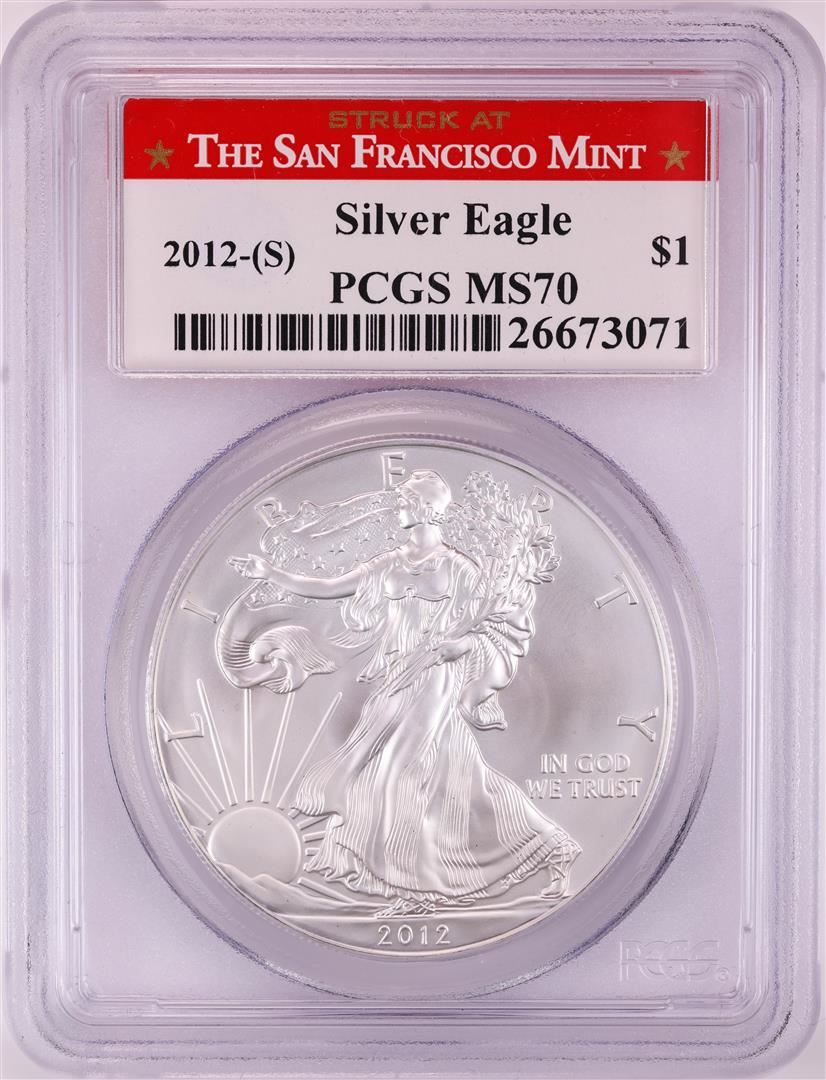 One 2012-(S) $1 American Silver Eagle Coin PCGS MS70 San Francisco. PCGS Graded.