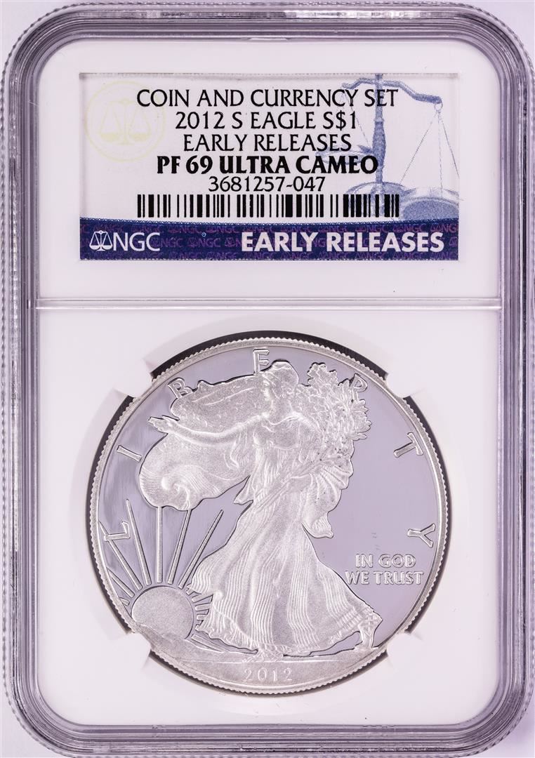One 2012-S $1 Proof American Silver Eagle Coin NGC PF69 Ultra Cameo Early Releases. NGC Certified.