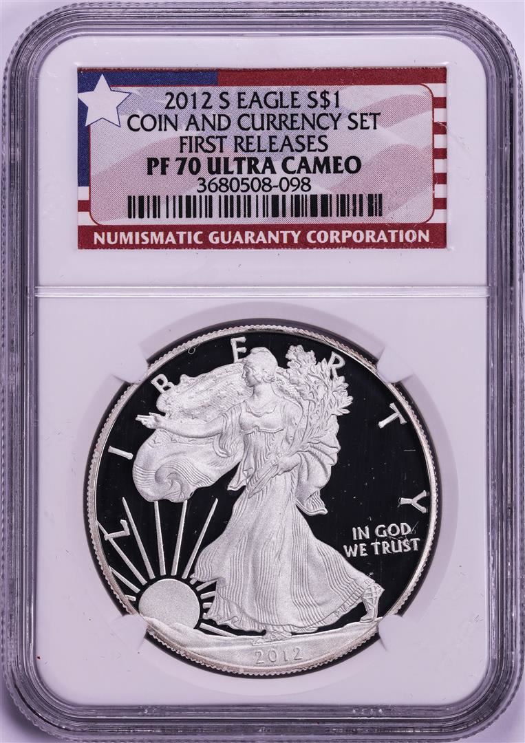 One 2012-S $1 Proof American Silver Eagle Coin NGC PF70 Ultra Cameo First Releases. NGC Certified.