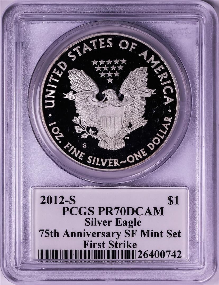 2012-S $1 Proof American Silver Eagle Coin PCGS PR70DCAM First Strike Mercanti Signed