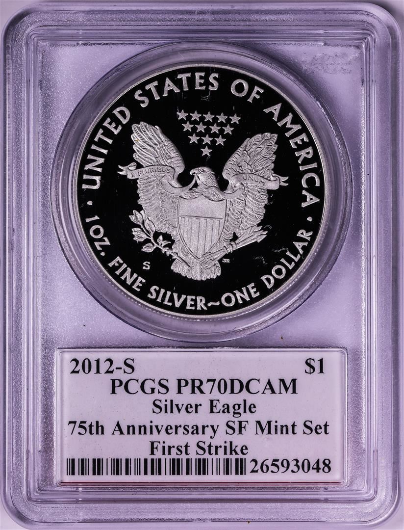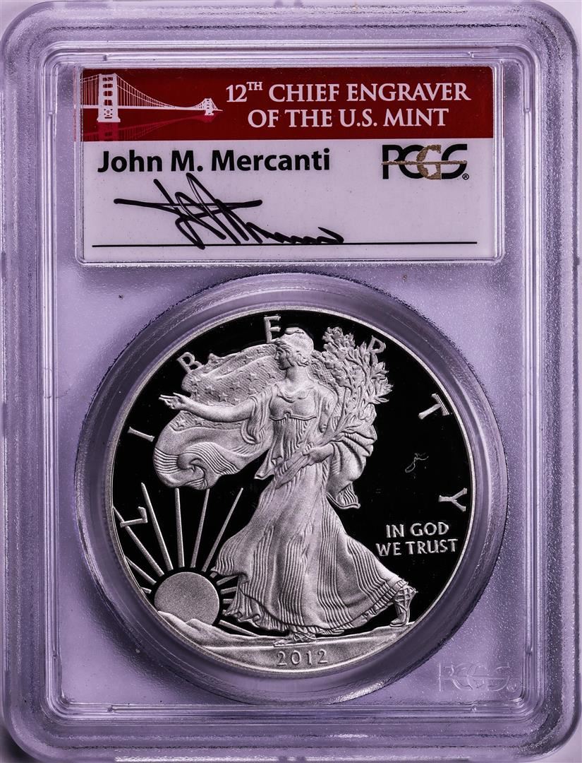 2012-S $1 Proof American Silver Eagle Coin PCGS PR70DCAM First Strike Mercanti Signed