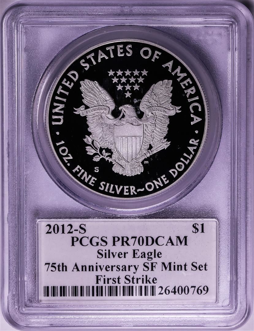 2012-S $1 Proof American Silver Eagle Coin PCGS PR70DCAM First Strike Mercanti Signed