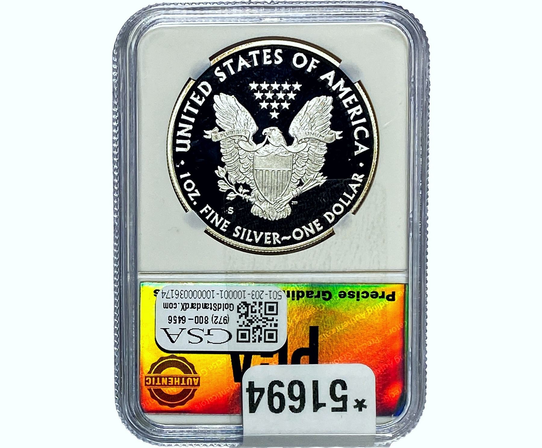 e. Coins sold referencing a third-party grading service are sold “AS IS” without any express or implied warranty, except for a guarantee by GSA that they are genuine. Removal or alteration of the holder, voids all of Bidder’s claims concerning that Product. Certain warranties may be available from the grading services and Bidders are referred to them for further details: Numismatic Guaranty Corporation (NGC), PO Box 4776, Sarasota, FL 34230, www.ngccoin.com/services/writtenguarantee.asp; Professional Coin Grading Services (PCGS), PO Box 9458, Newport Beach, CA 92658, www.pcgs.com/guarantee.html; ANACS, 6555 S. Kenton St., Ste. 303, Englewood, CO 80111; and Independent Coin Grading Co. (ICG), 7901 East Bellview, Ave., Suite 50, Englewood, CO 80111.