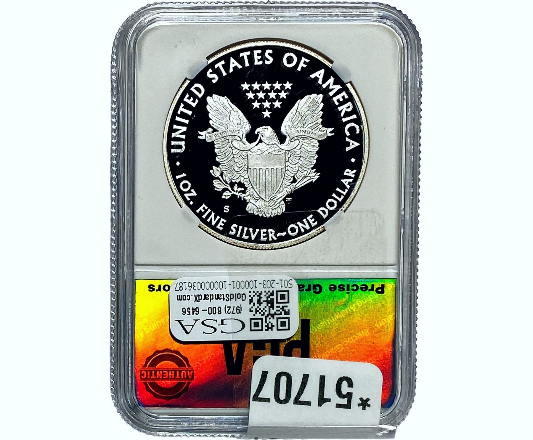 e. Coins sold referencing a third-party grading service are sold “AS IS” without any express or implied warranty, except for a guarantee by GSA that they are genuine. Removal or alteration of the holder, voids all of Bidder’s claims concerning that Product. Certain warranties may be available from the grading services and Bidders are referred to them for further details: Numismatic Guaranty Corporation (NGC), PO Box 4776, Sarasota, FL 34230, www.ngccoin.com/services/writtenguarantee.asp; Professional Coin Grading Services (PCGS), PO Box 9458, Newport Beach, CA 92658, www.pcgs.com/guarantee.html; ANACS, 6555 S. Kenton St., Ste. 303, Englewood, CO 80111; and Independent Coin Grading Co. (ICG), 7901 East Bellview, Ave., Suite 50, Englewood, CO 80111.