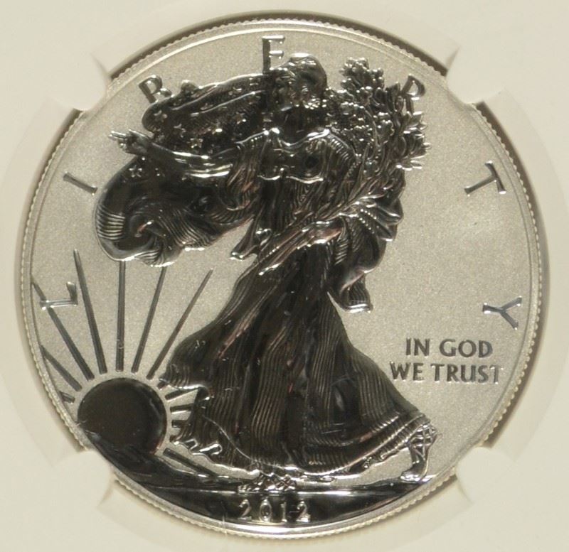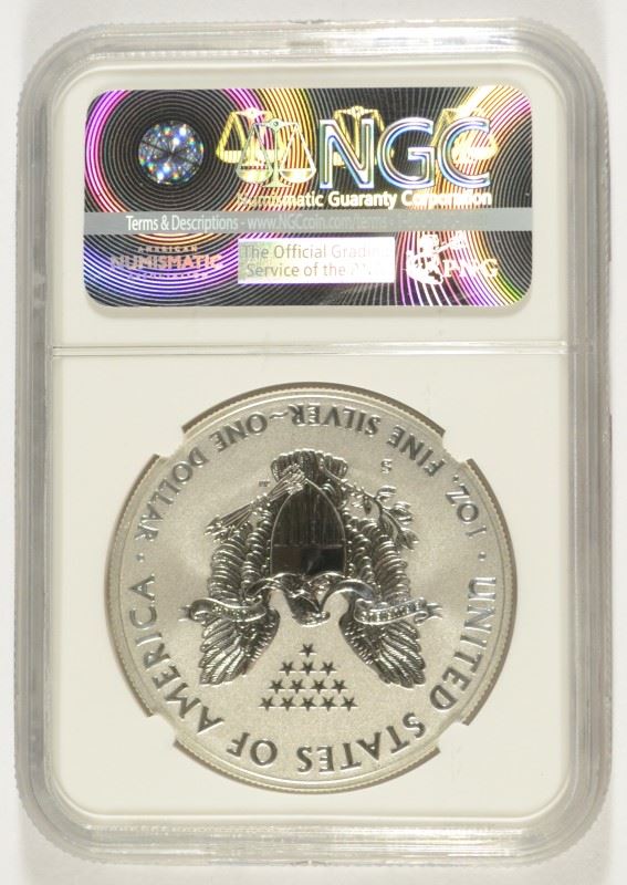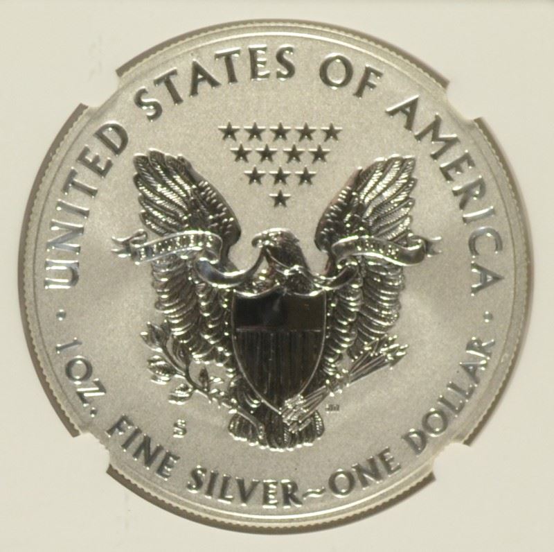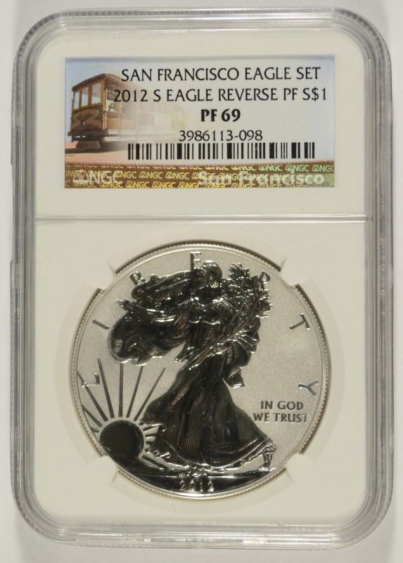 2012-S AMERICAN SILVER EAGLE, REVERSE PROOF, NGC PROOF-69 TROLLEY LABEL