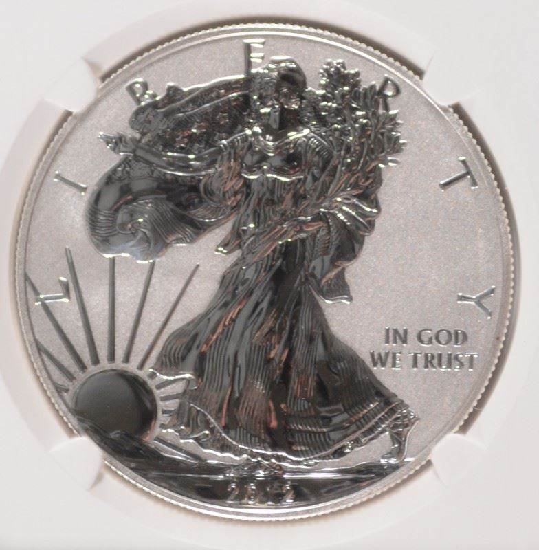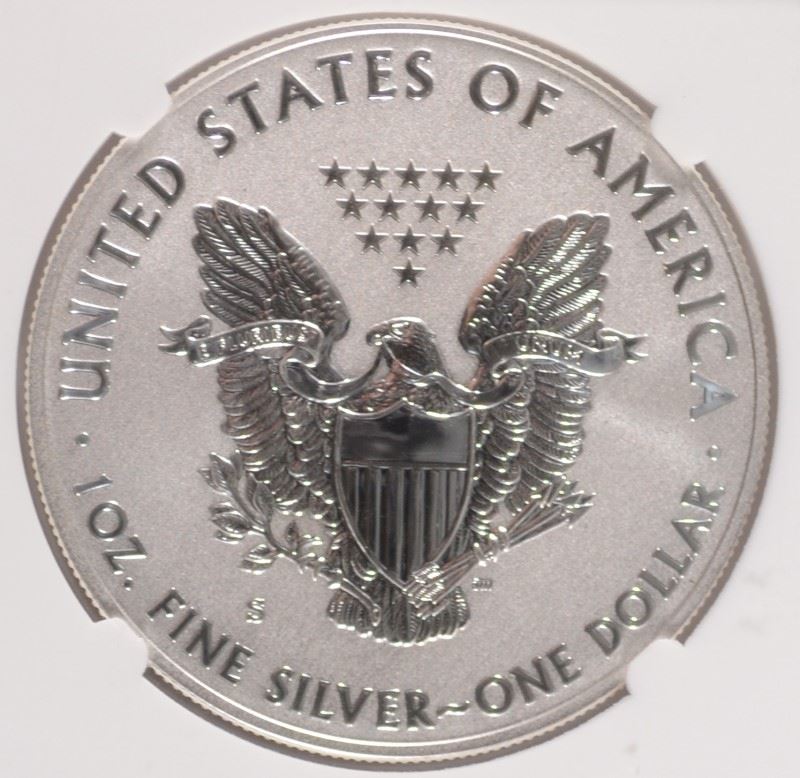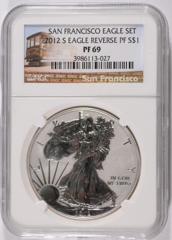2012-S AMERICAN SILVER EAGLE, REVERSE PROOF, NGC PROOF-69 TROLLEY LABEL