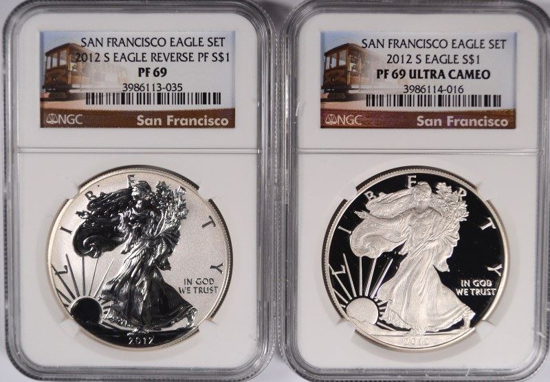 2012-S AMERICAN SILVER EAGLE SET, NGC REVERSE PROOF PF-69 & PF-69 ULTRA CAMEO