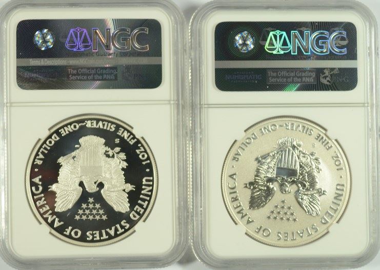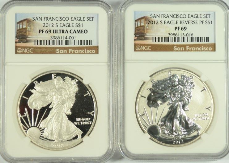 2012-S AMERICAN SILVER EAGLE SET, NGC REVERSE PROOF PF-69 & PF-69 ULTRA CAMEO