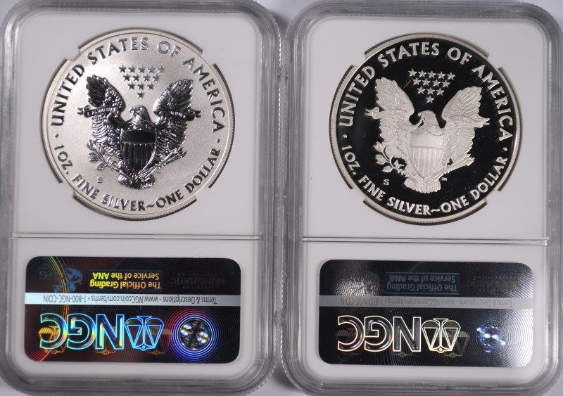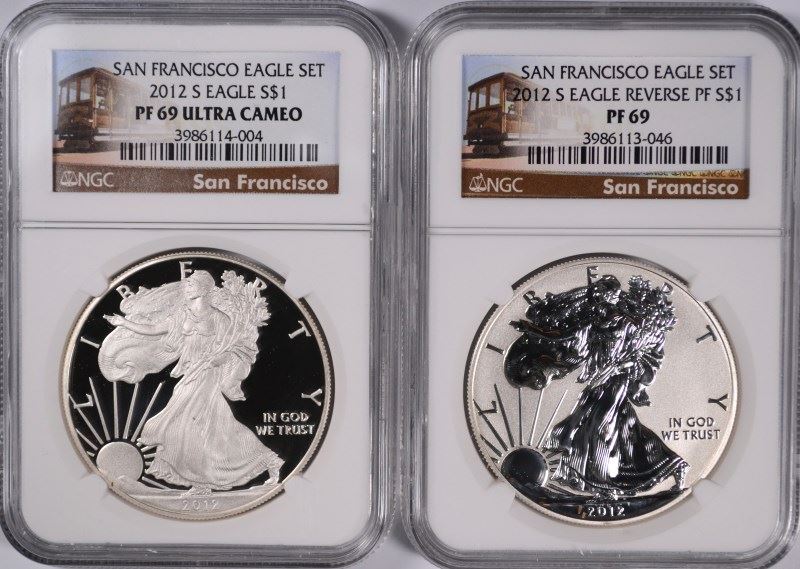 2012-S AMERICAN SILVER EAGLE SET, NGC REVERSE PROOF PF-69 & PF-69 ULTRA CAMEO