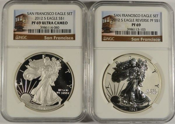 2012-S AMERICAN SILVER EAGLE SET, NGC REVERSE PROOF PF-69 & PF-69 ULTRA CAMEO