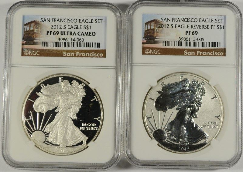 2012-S AMERICAN SILVER EAGLE SET, NGC REVERSE PROOF PF-69 & PF-69 ULTRA CAMEO