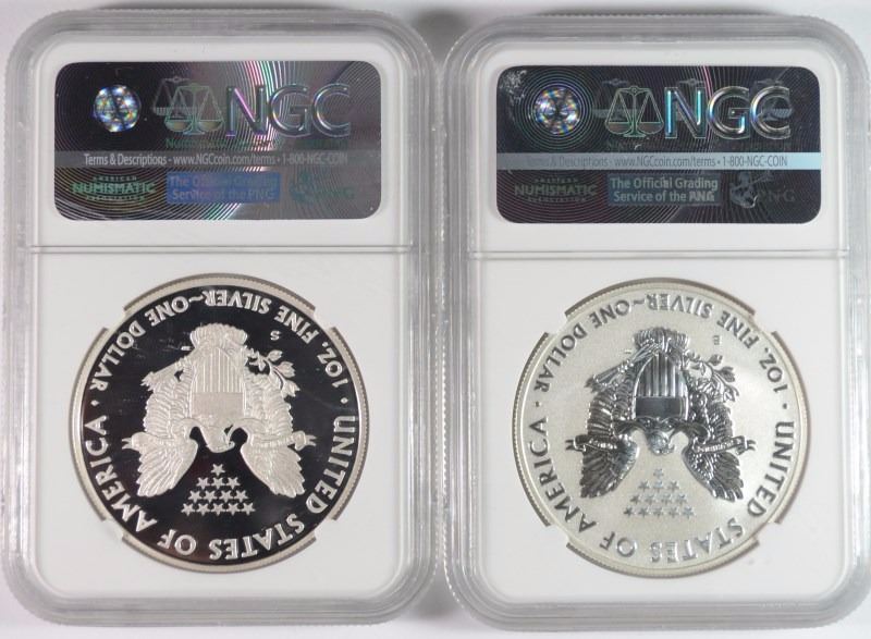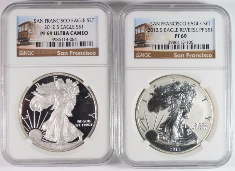 2012-S AMERICAN SILVER EAGLE SET, NGC REVERSE PROOF PF-69 & PF-69 ULTRA CAMEO