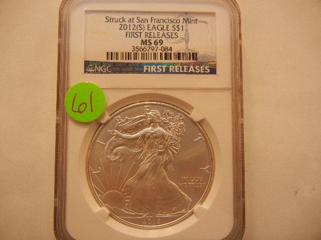 2012-S American Silver Eagle, First Releases, Graded by NGC MS69, .999 Fine Silver, 1 Troy Oz.