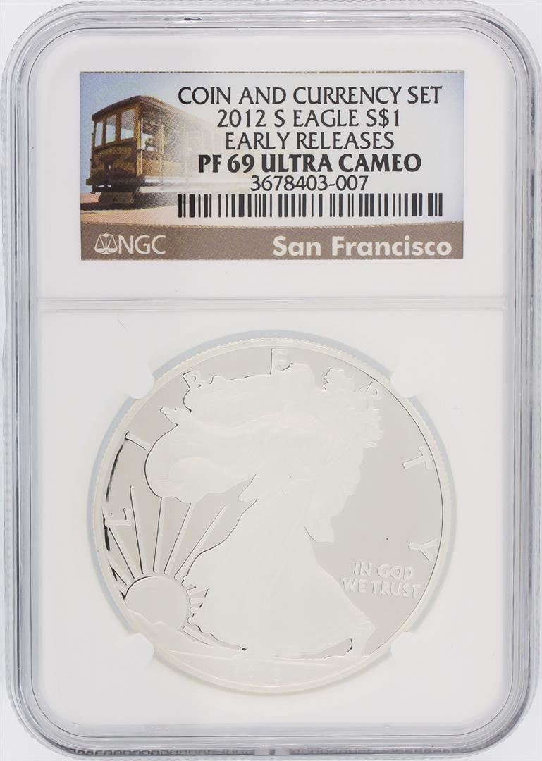 One 2012-S NGC Graded PF69 Ultra Cameo $1 American Silver Eagle Silver Coin. NGC Certified.