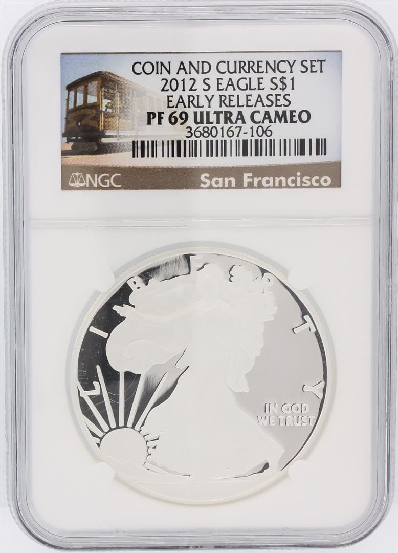 One 2012-S NGC Graded PF69 Ultra Cameo $1 American Silver Eagle Silver Coin. NGC Certified.