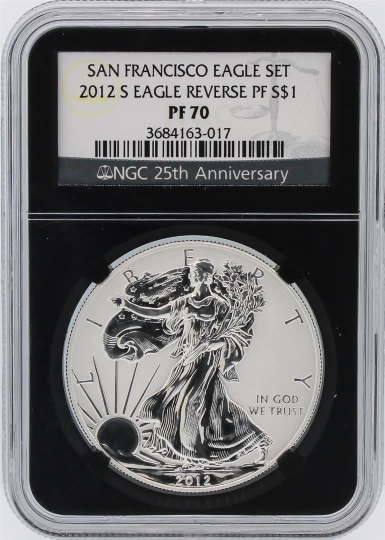 One 2012-S NGC Graded PF70 $1 American Silver Eagle Reverse Silver Coin. NGC Certified.