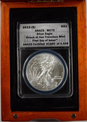 2012-S ( SAN FRANCISCO ) AMERICAN SILVER EAGLE, ANACS MS-70 FIRST DAY OF ISSUE