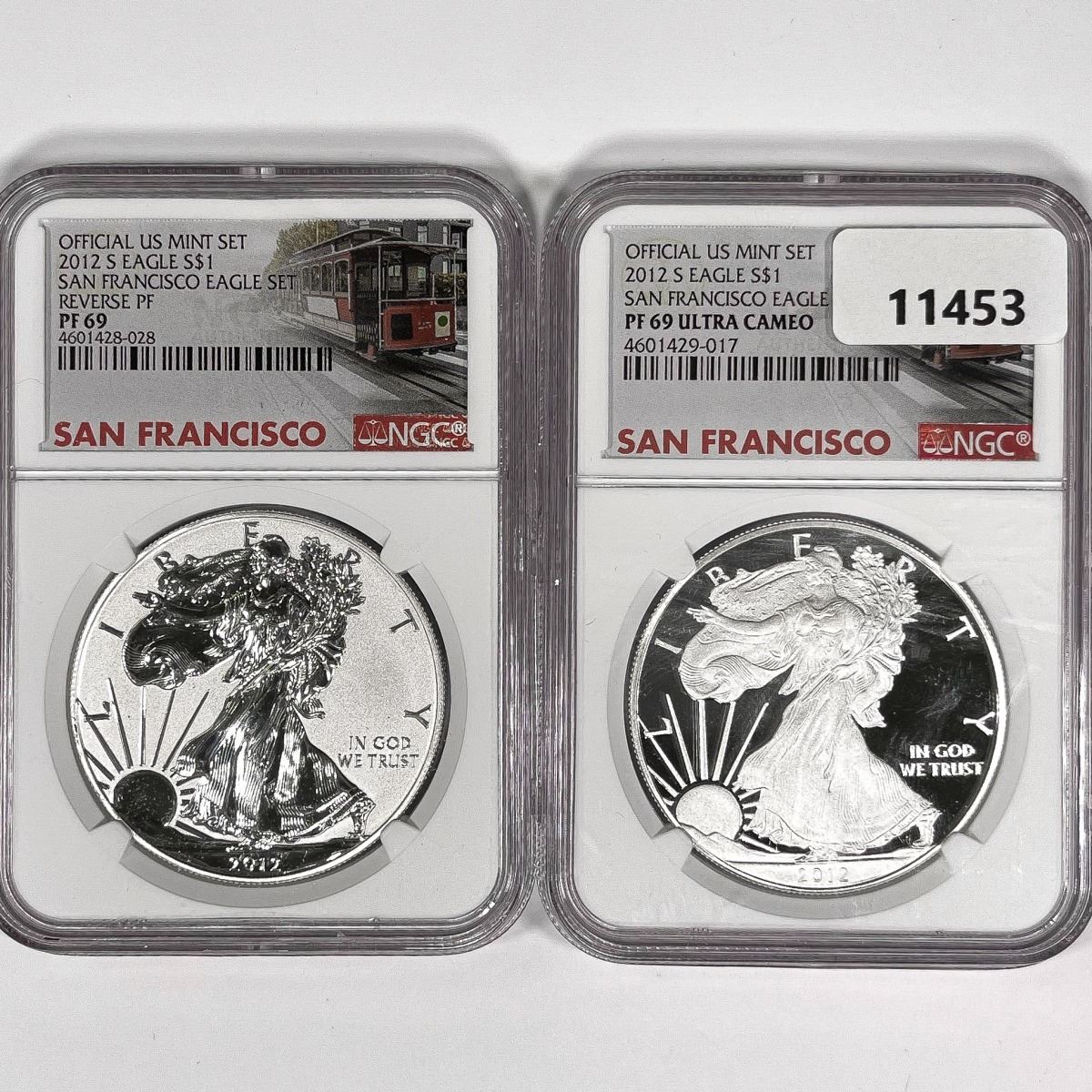 2012-S Set (2) American Silver Eagle NGC-PF69 1 UC, 1 Rev P