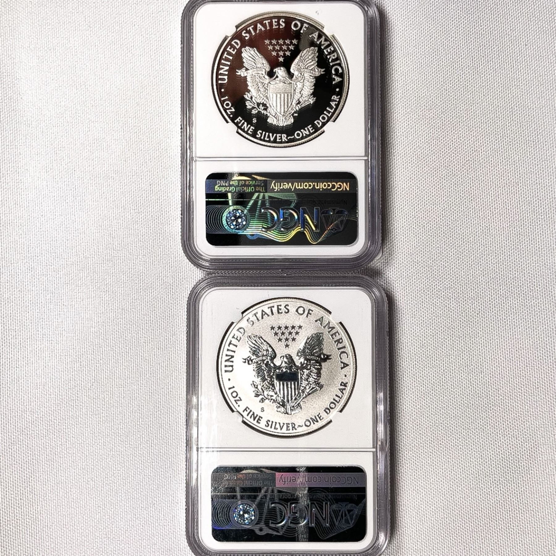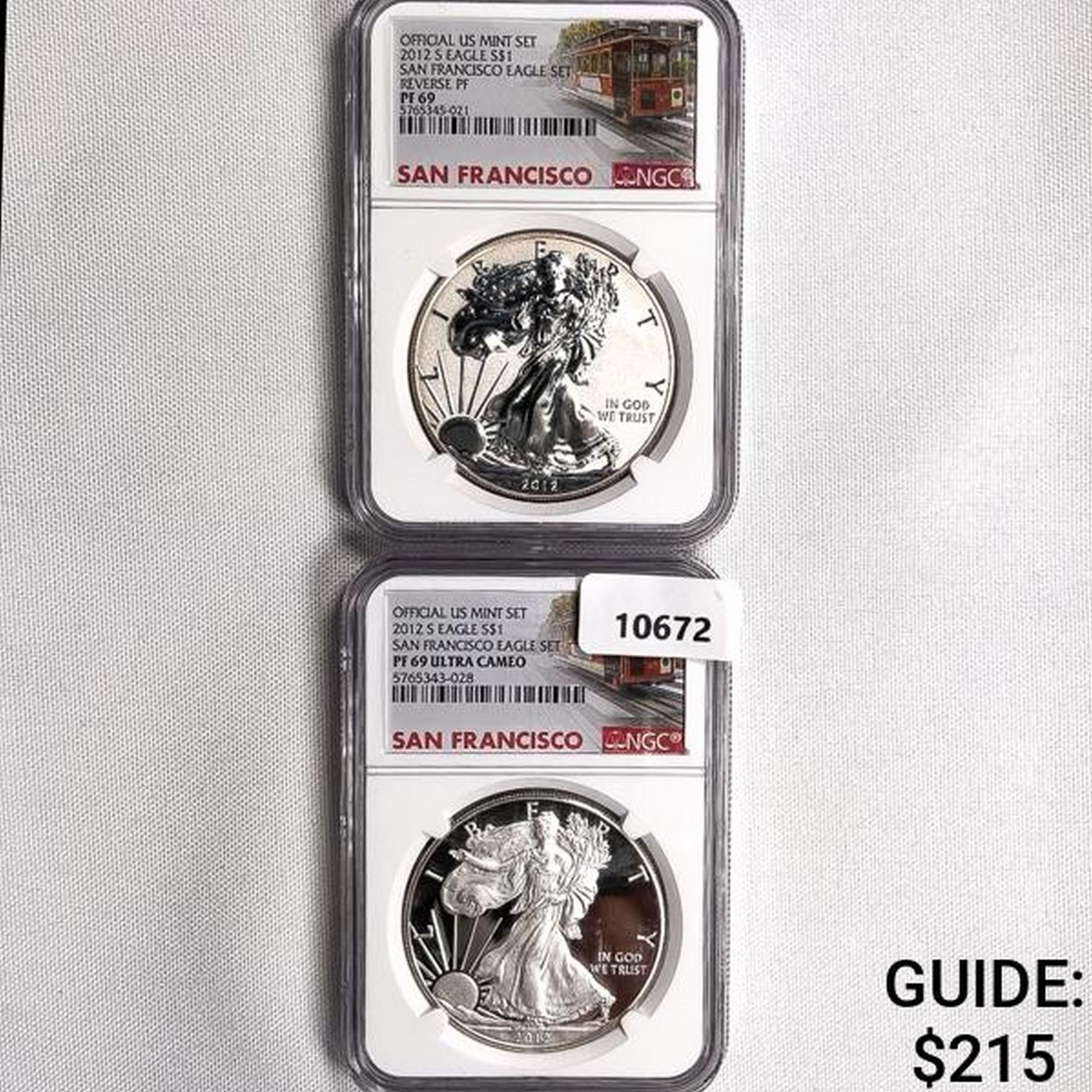 2012-S Set (2) Silver Eagle NGC-PF69 1 UC, 1 Rev