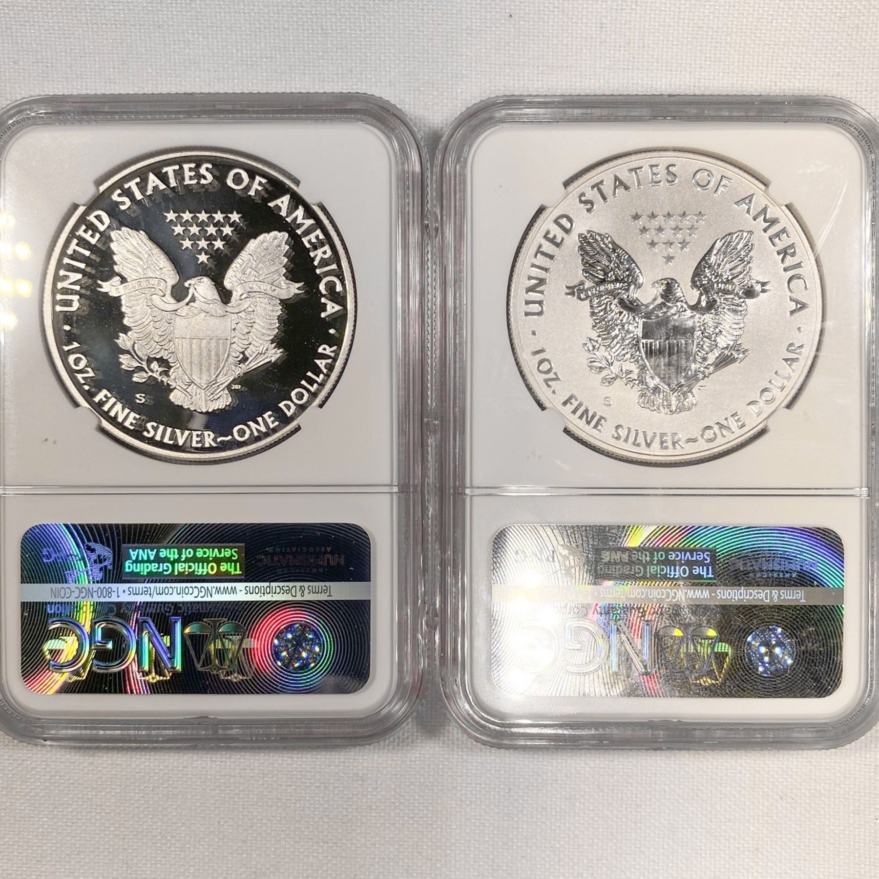 2012-S Set (2) Silver Eagle NGC-PF69 1 UC, 1 Rev