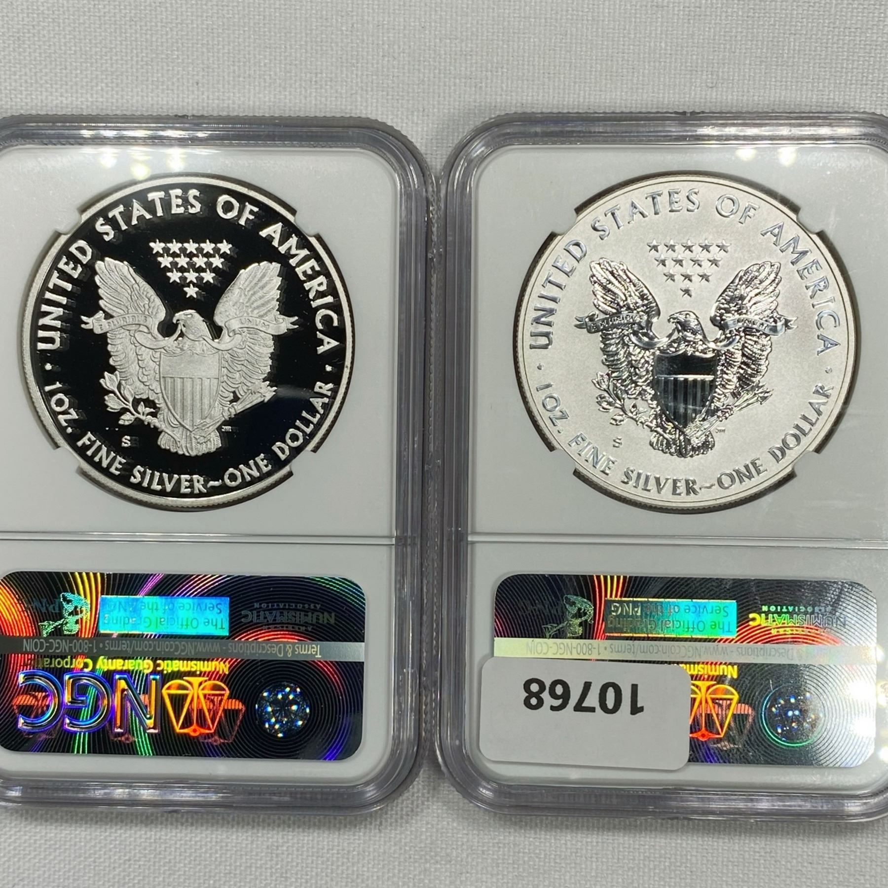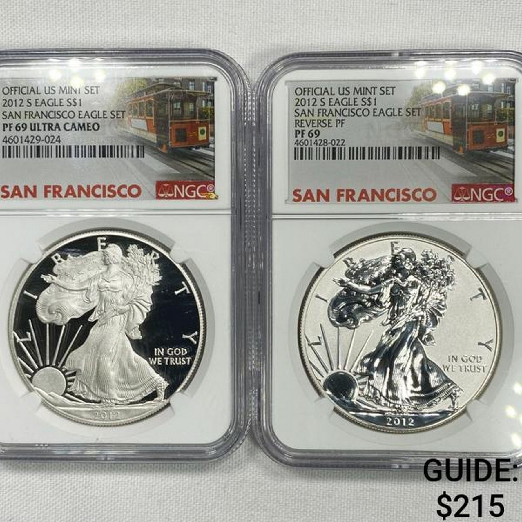 2012-S Set (2) Silver Eagle NGC-PF69 1 UC, 1 Rev