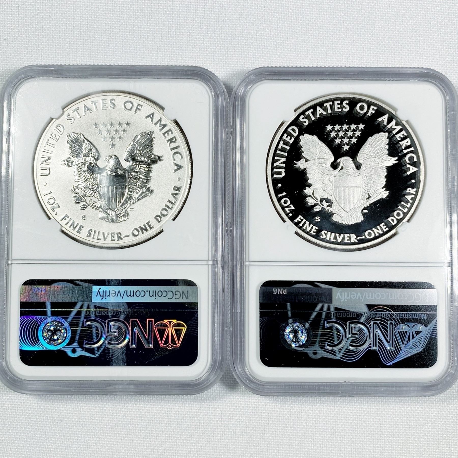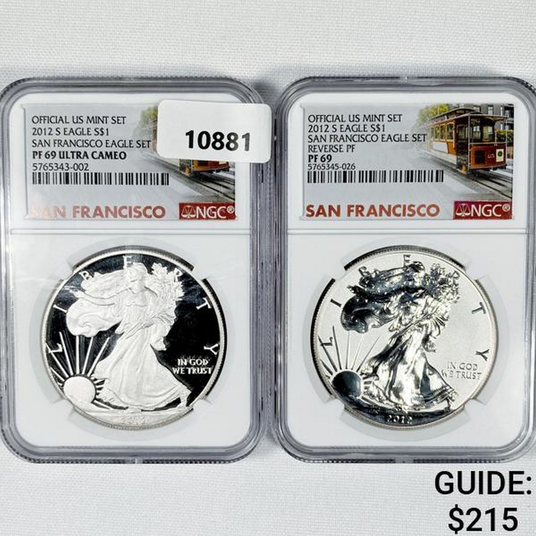 2012-S Set (2) Silver Eagle NGC-PF69 1 UC, 1 Rev