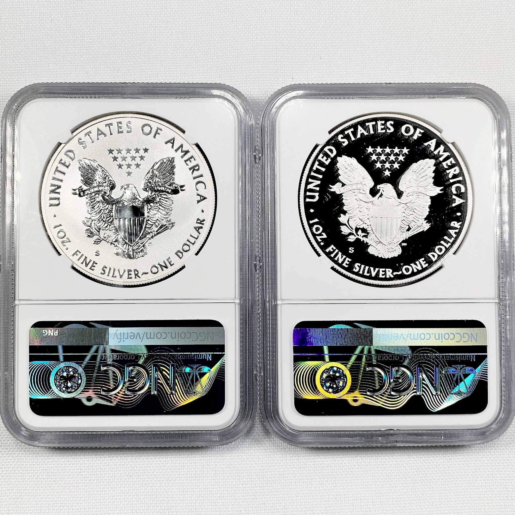 2012-S Set (2) Silver Eagle NGC-PF69 1 UC, 1 Rev