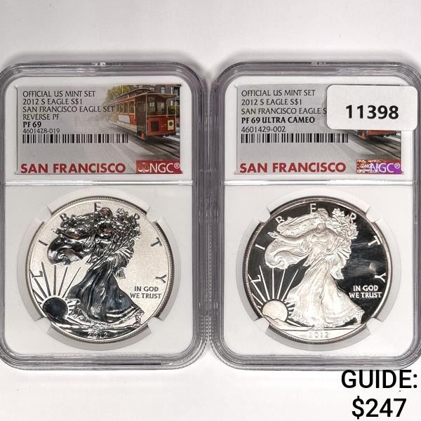2012-S Set (2) Silver Eagle NGC-PF69 1 UC, 1 Rev