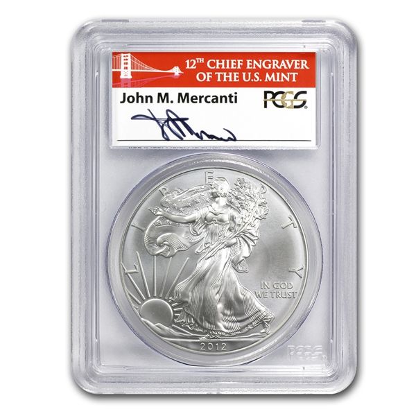 2012 (S) Silver Eagle MS-70 PCGS (FS) Golden Gate - Mer **|**|** 2012 (S) Silver Eagle MS-70 PCGS (FS) Golden Gate - Mercanti ; MSRP: $200