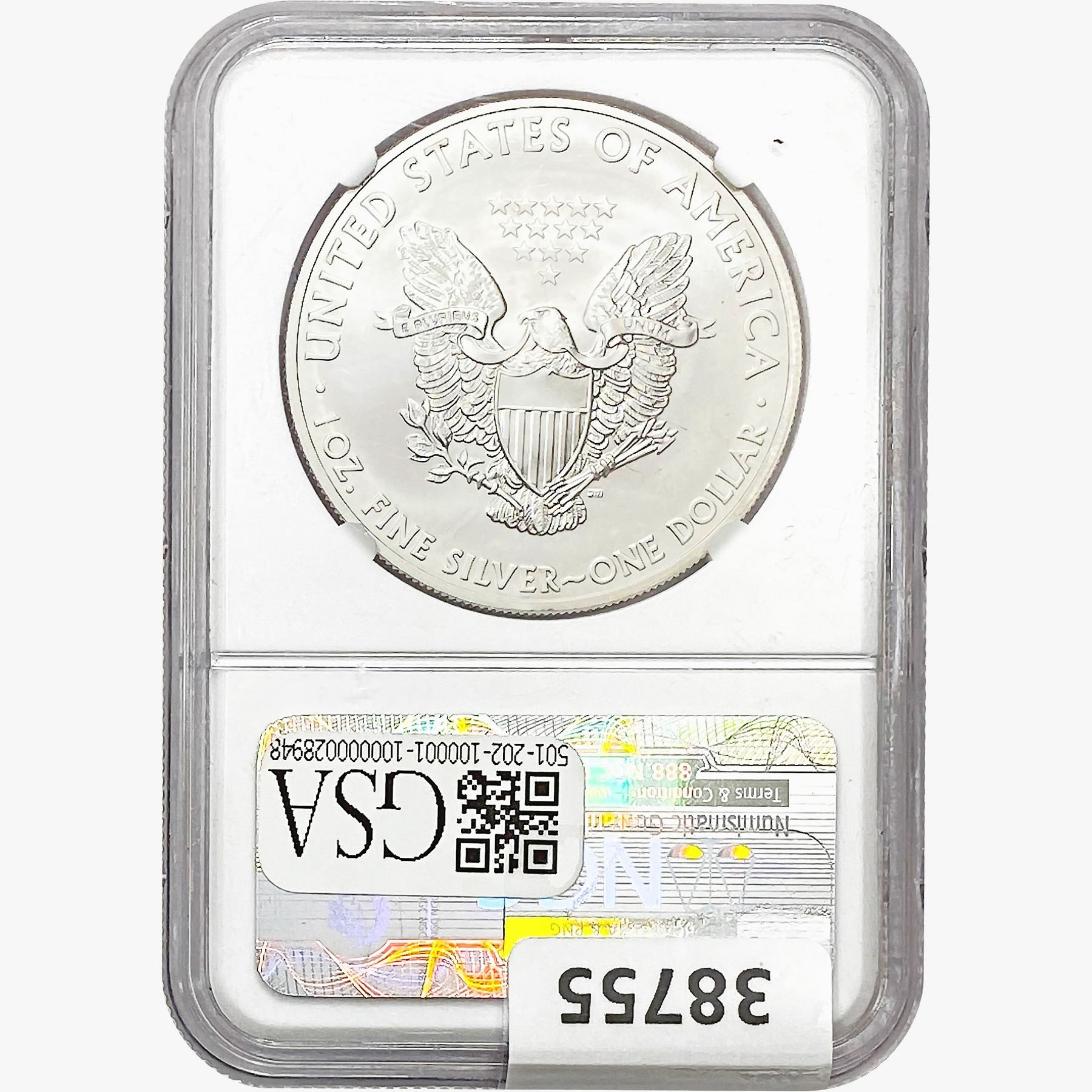 COINS AND CURRENCY LISTED IN GSA’S CATALOG AS GRADED AND ENCAPSULATED BY PCGS, NGC, ANACS, ICG, PCGS CURRENCY, PMG, PCGS BANKNOTE GRADING, CMC OR ANY OTHER THIRD-PARTY GRADING SERVICE ARE LIKEWISE SOLD “AS-IS” EXCEPT AS EXPRESSLY SET FORTH HEREIN. ALL THIRD-PARTY GRADING SERVICE GUARANTEES, INCLUDING AUTHENTICITY, ARE THE SOLE RESPONSIBILITY OF THE THIRD-PARTY GRADING SERVICE AND NOT WARRANTIES OR GUARANTEES OF GSA. BIDDERS SHOULD CONTACT THESE THIRD-PARTY GRADING SERVICES DIRECTLY WITH RESPECT TO ANY CLAIMS OR QUESTIONS THEY MAY HAVE CONCERNING THEIR GUARANTEES AND WARRANTIES. BIDDERS ACKNOWLEDGE AND AGREE THAT AUCTIONEER IS NOT BOUND BY OR LIABLE FOR ANY OPINION OR CERTIFICATION BY ANY THIRD-PARTY GRADING SERVICE. REMOVAL OF A PRODUCT FROM ITS PROTECTIVE CASING OR HOLDER OR ALTERATION OF ANY COIN HOLDER WAIVES ALL RIGHTS CONCERNING THE PRODUCT CONTAINED THEREIN.