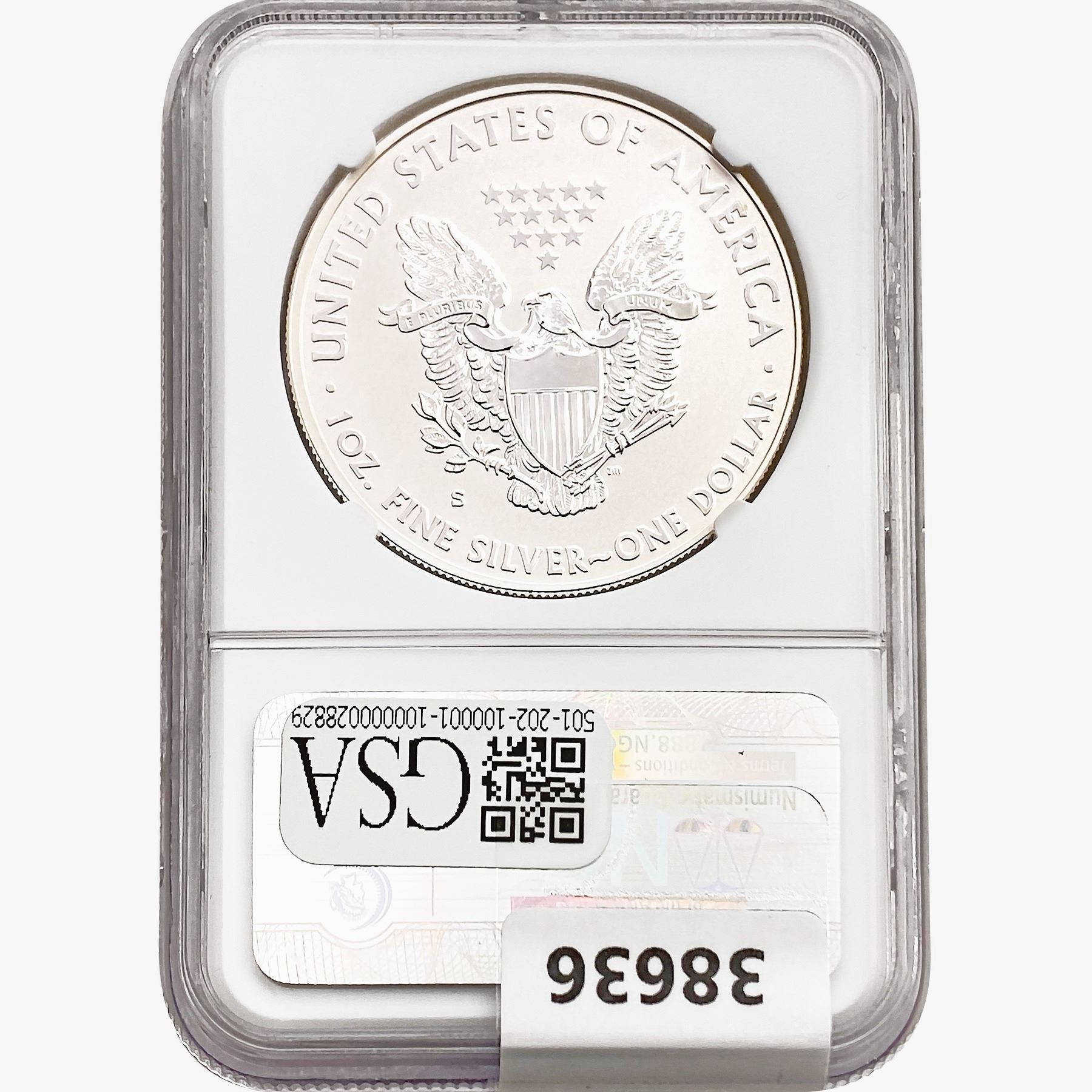 COINS AND CURRENCY LISTED IN GSA’S CATALOG AS GRADED AND ENCAPSULATED BY PCGS, NGC, ANACS, ICG, PCGS CURRENCY, PMG, PCGS BANKNOTE GRADING, CMC OR ANY OTHER THIRD-PARTY GRADING SERVICE ARE LIKEWISE SOLD “AS-IS” EXCEPT AS EXPRESSLY SET FORTH HEREIN. ALL THIRD-PARTY GRADING SERVICE GUARANTEES, INCLUDING AUTHENTICITY, ARE THE SOLE RESPONSIBILITY OF THE THIRD-PARTY GRADING SERVICE AND NOT WARRANTIES OR GUARANTEES OF GSA. BIDDERS SHOULD CONTACT THESE THIRD-PARTY GRADING SERVICES DIRECTLY WITH RESPECT TO ANY CLAIMS OR QUESTIONS THEY MAY HAVE CONCERNING THEIR GUARANTEES AND WARRANTIES. BIDDERS ACKNOWLEDGE AND AGREE THAT AUCTIONEER IS NOT BOUND BY OR LIABLE FOR ANY OPINION OR CERTIFICATION BY ANY THIRD-PARTY GRADING SERVICE. REMOVAL OF A PRODUCT FROM ITS PROTECTIVE CASING OR HOLDER OR ALTERATION OF ANY COIN HOLDER WAIVES ALL RIGHTS CONCERNING THE PRODUCT CONTAINED THEREIN.