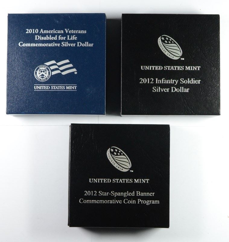 2012 STAR SPANGLED BANNER, 2010 DISABLED VETS, 2012 INFANTRY PF COMMEM DOLLARS,