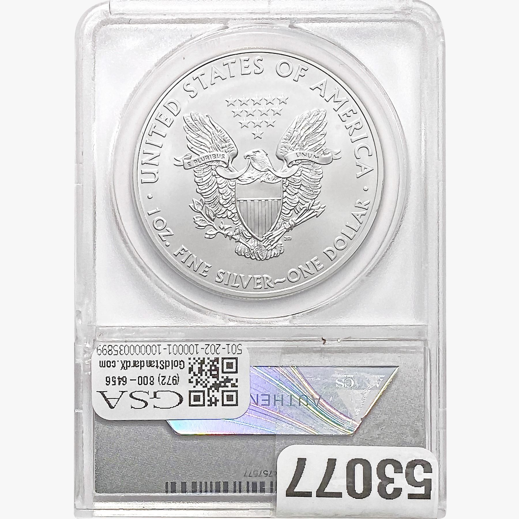e. Coins sold referencing a third-party grading service are sold “AS IS” without any express or implied warranty, except for a guarantee by GSA that they are genuine. Removal or alteration of the holder, voids all of Bidder’s claims concerning that Product. Certain warranties may be available from the grading services and Bidders are referred to them for further details: Numismatic Guaranty Corporation (NGC), PO Box 4776, Sarasota, FL 34230, www.ngccoin.com/services/writtenguarantee.asp; Professional Coin Grading Services (PCGS), PO Box 9458, Newport Beach, CA 92658, www.pcgs.com/guarantee.html; ANACS, 6555 S. Kenton St., Ste. 303, Englewood, CO 80111; and Independent Coin Grading Co. (ICG), 7901 East Bellview, Ave., Suite 50, Englewood, CO 80111.